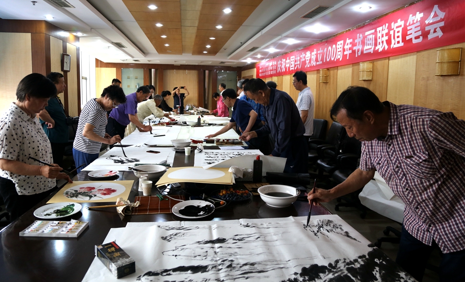 为庆祝中国共产党成立100周年,回顾党的奋斗历程,歌颂美好新时代,助力公司企业文化建设。6月24日,芜湖徽腾教育科技有限公司、烟台市老年书画研究会、烟台市老干部志愿者协会共同举办“庆祝中国共产党成立100周年联谊书画笔会”。本次活动共有18位县处级退休老干部书画家参加。